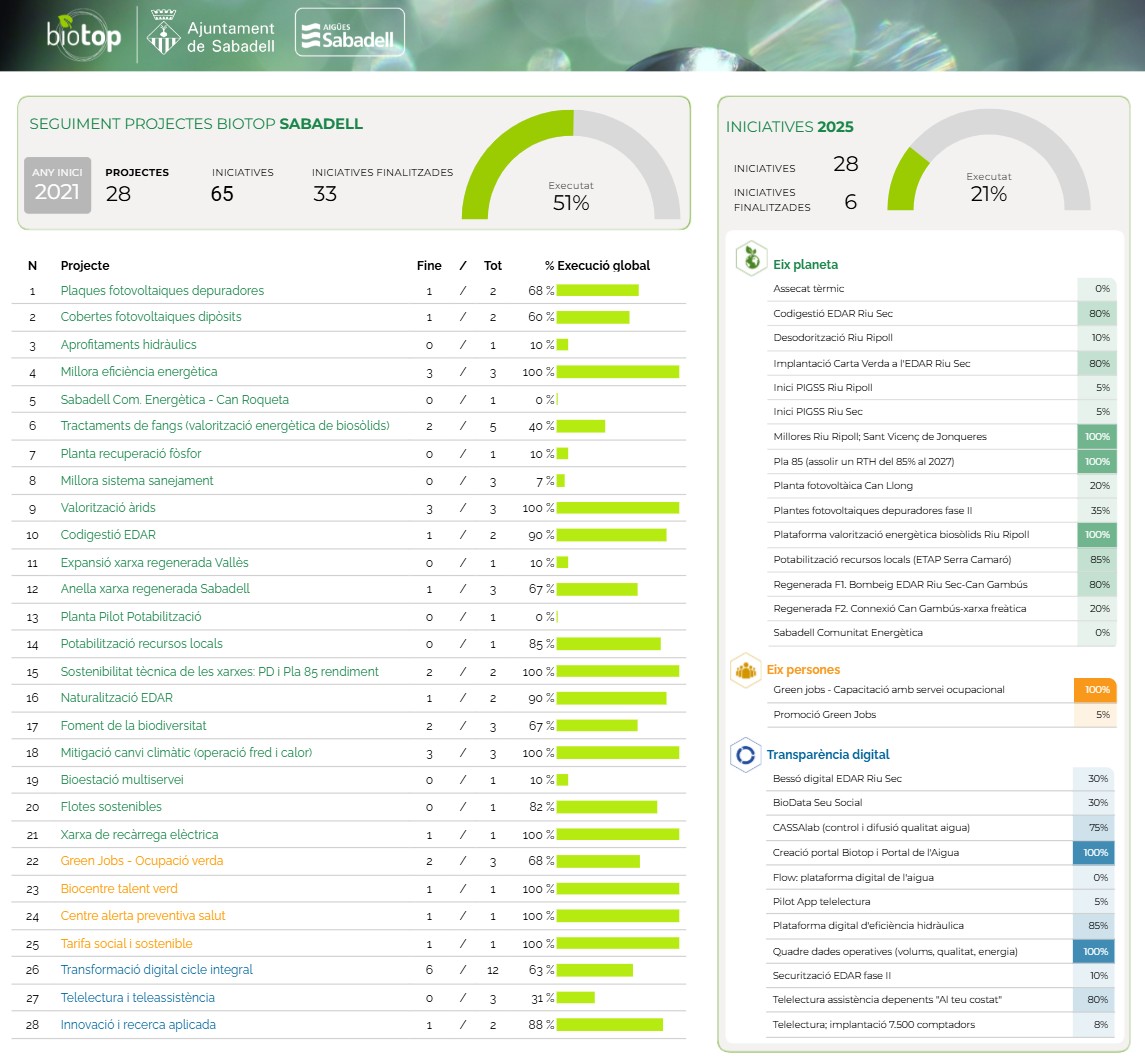 Conjuntamente con el Ayuntamiento de Sabadell, hemos creado un cuadro de mando para poder hacer un seguimiento exhaustivo del avance de los proyectos, acciones y objetivos previstos: